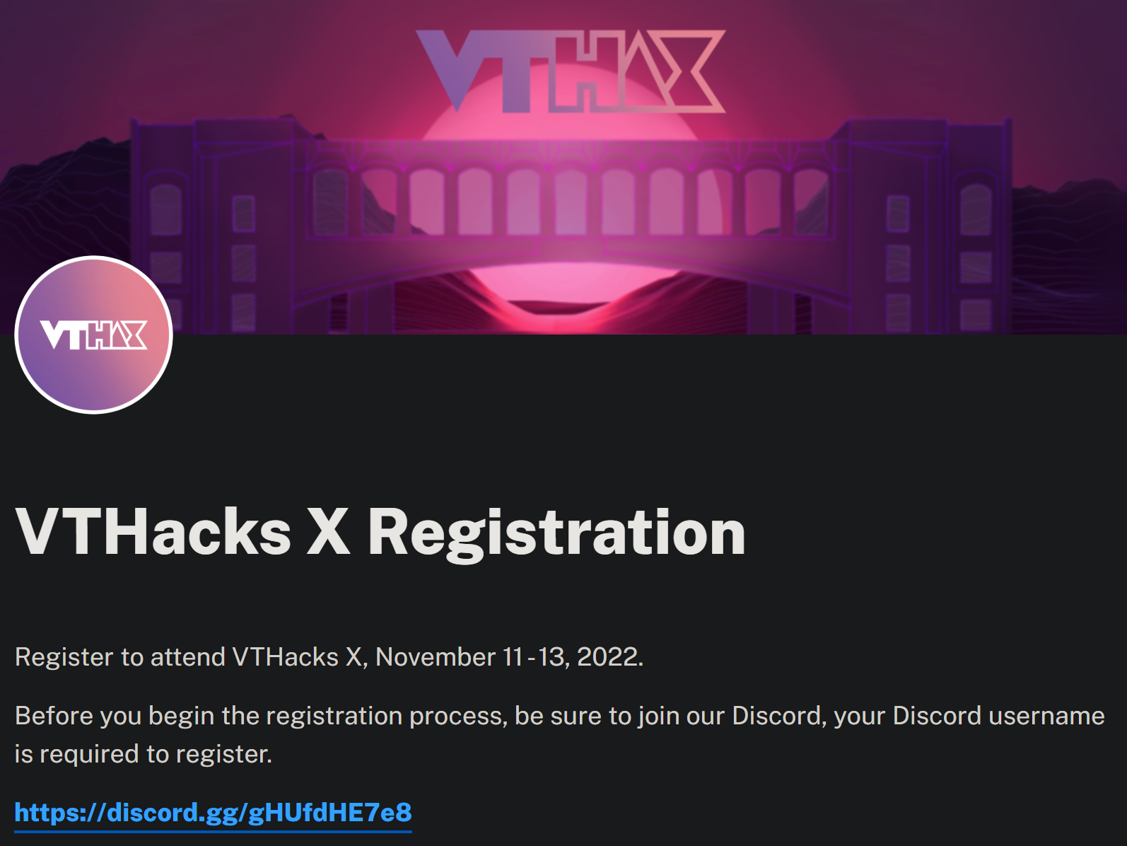 Contact us at hacker@vthacks.com if you have any questions, concerns, or feedback